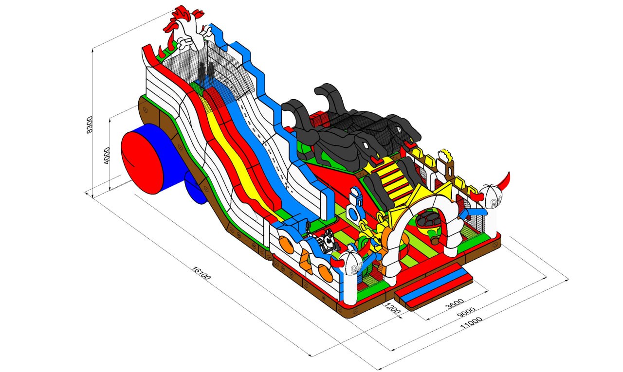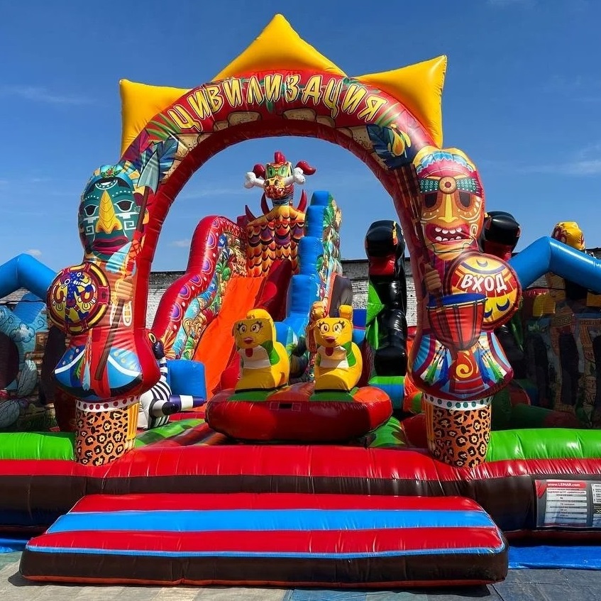 Надувной батут «Цивилизация» - это воплощение надёжности и продуманности для вашего бизнеса. Обладая значительной площадью (176 м²) и сбалансированными габаритами, этот комплекс предлагает оптимальное соотношение вместимости и занимаемого пространства. Стартовая высота горки в 4 метра является универсальной и безопасной, привлекая широкую аудиторию детей разного возраста, что гарантирует стабильную загрузку и окупаемость.