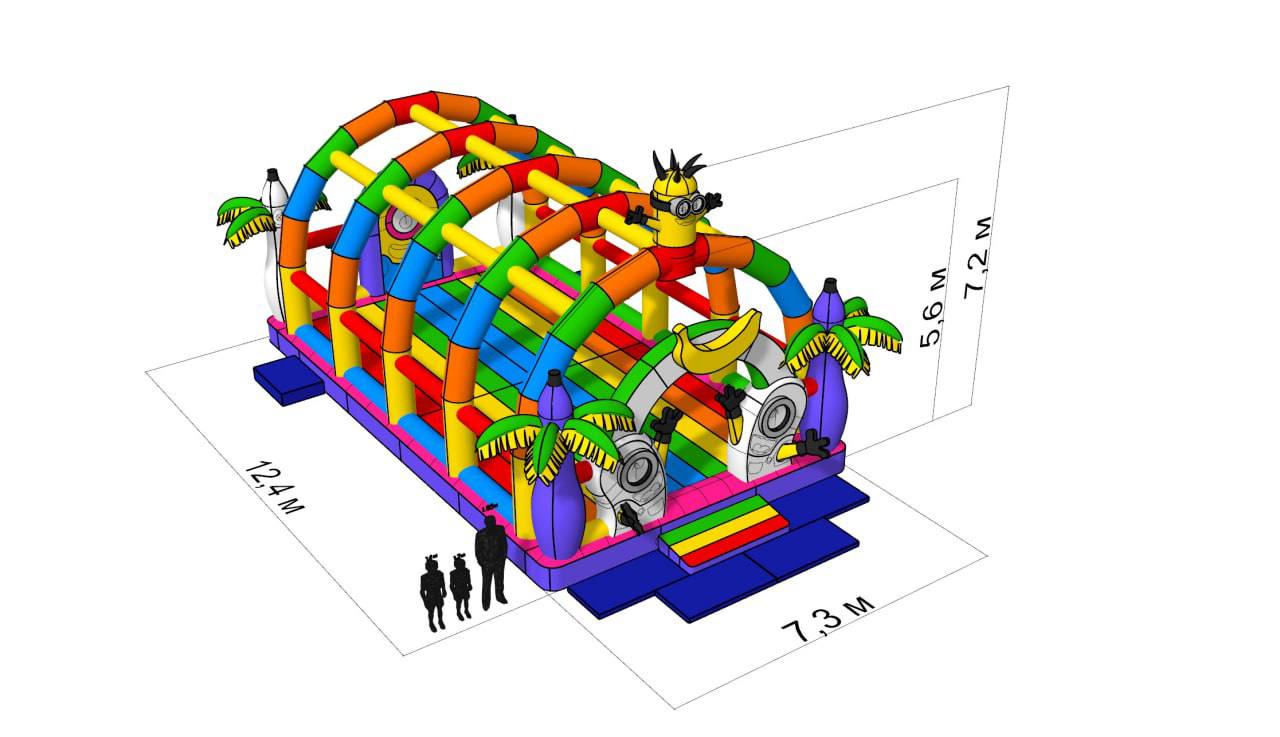 Надувной комплекс «Миньён-3» — это революционное предложение для вашего бизнеса! Знакомый всем дизайн Миньонов теперь в формате полноценного крытого ангара, который не требует регистрации в Гостехнадзоре благодаря биомеханическому риску РБ-4. Это избавляет вас от бюрократии и позволяет начать работу максимально быстро.